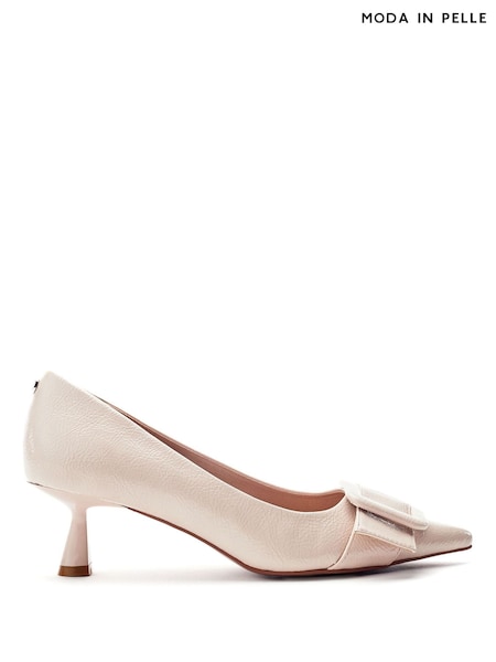 Moda in Pelle Natural Ghiselle Kitten Heel Court With Buckle Trim