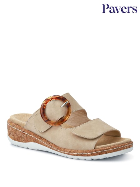 Pavers Cream Wide Fit Dual-Fasten Mules