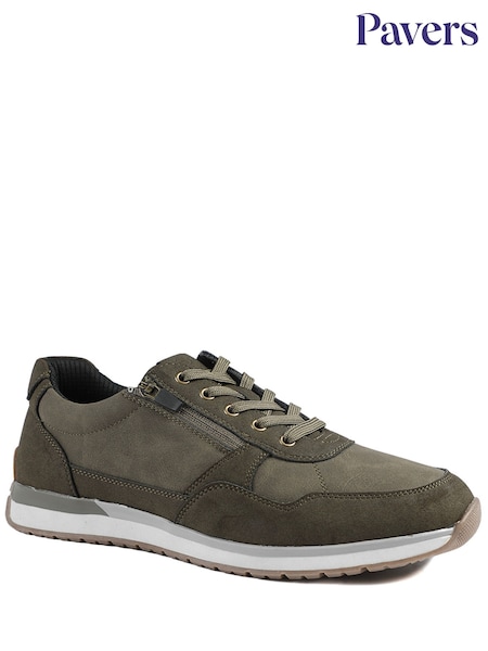 Pavers Khaki Green Lace Up Trainers with Grip Sole