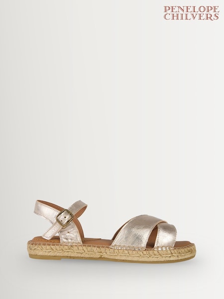 Penelope Chilvers Gold Chico Espadrille Cross Strap Shoes