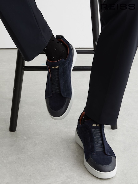 Reiss Navy Henry Suede Suede Elasticated-Lace Hybrid Trainers