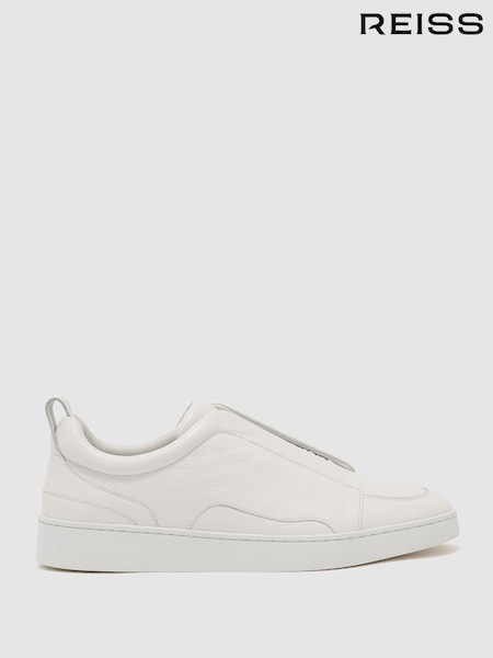 Reiss Optic White Henry Bonded-Leather Elasticated Trainers