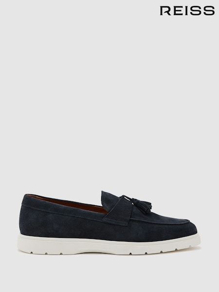 Reiss Dark Navy Jimmy Suede Tassel Loafers