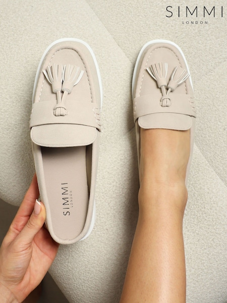 Simmi London White Chiara Shell Detail Slip On Flat Sandals