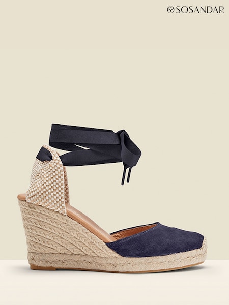 Sosandar Blue Suede Valenciana Wedge Espadrilles
