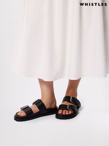 Whistles Black Double Buckle Slide Sandals