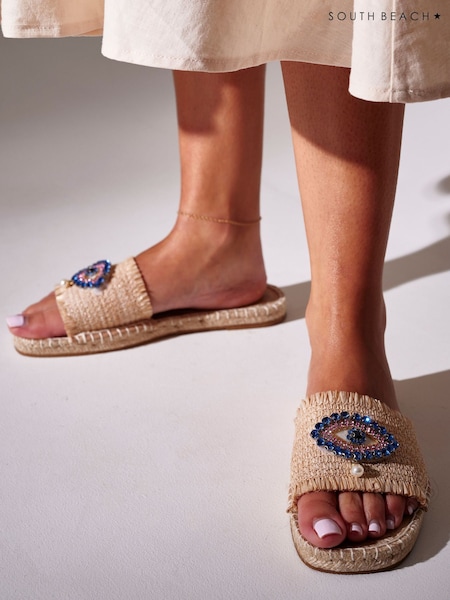 South Beach Blue Evil Eye Sequin Embellished Woven Sandals