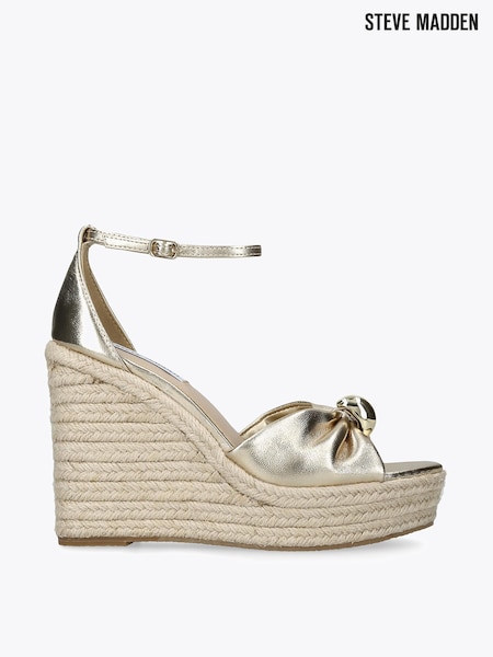 Yours Curve Gold Extra-Wide Fit Mid Bow Block Sandal