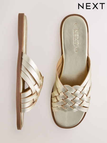 Lipsy Gold Scallop Detail Faux Leather Flat Gladiator Summer Sandals
