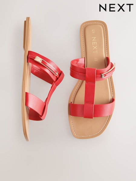 Red Leather Standard/Wide Fit Buckle Trim Sandals