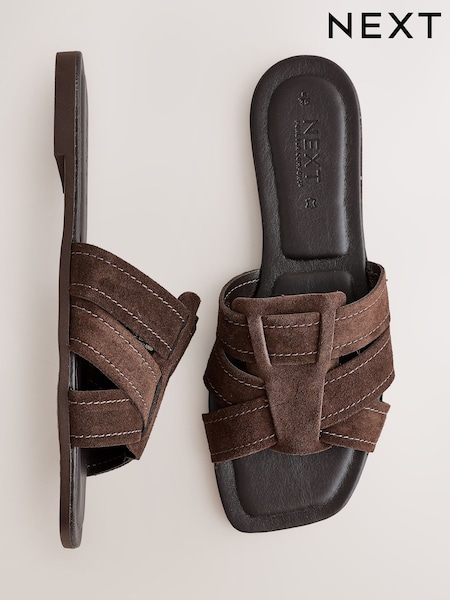 Chocolate Brown Extra Wide Fit Forever Comfort® Stitched Mule Sandals