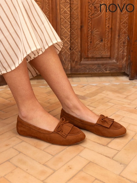 Tan Brown Forever Comfort® Leather Loafers With Fringing