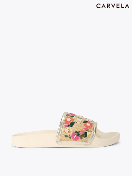 Taupe Brown Coffee Embroidered Towelling Slipper Sliders