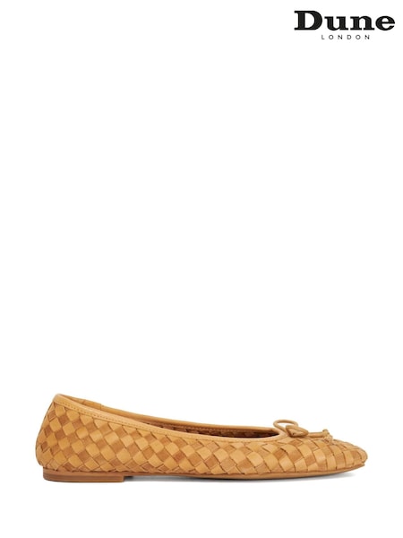 Dune London Light Brown Wide Fit Leather Heat Woven Ballerina Shoes