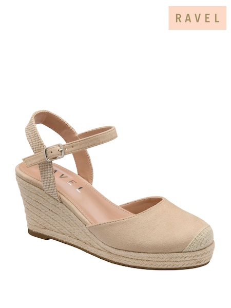 Ravel Cream Espadrille Wedge Closed Toe Strap Shoes