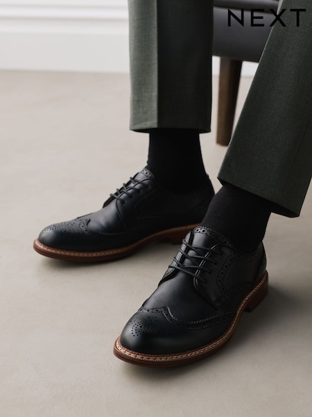 Black Contrast Sole Brogue Shoes