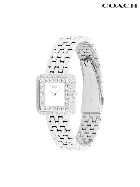 COACH Silver Tone Cass Crystal Dial and Stainless Steel Bracelet Watch