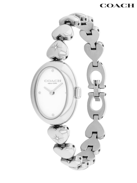 COACH Silver Tone Sammy Stainless Steel Heart Bracelet Watch