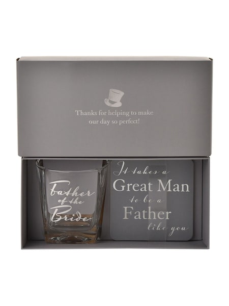 Widdop Clear Amore Whisky Glass and Coasters Set Father of the Bride
