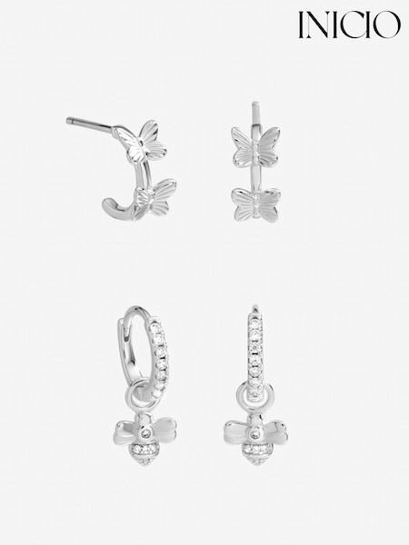 Inicio Sterling Silver Plated Butterfly Bumble Bee Earrings 2 Pack
