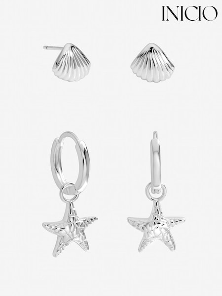 Inicio Sterling Silver Plated Starfish Earrings 2 Pack