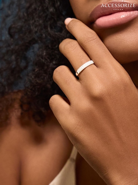Accessorize Silver Tone Sterling Silver Diamanté Encrusted Ring