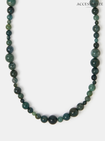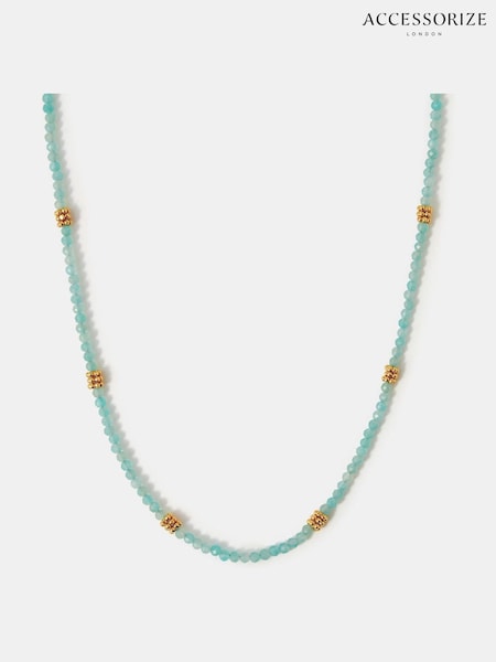 Accessorize Green 14ct Gold-Plated Chalcedony Bead Necklace