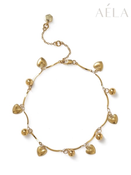 Aela Stainless Steel Heart Charm Gold Tone Anklet