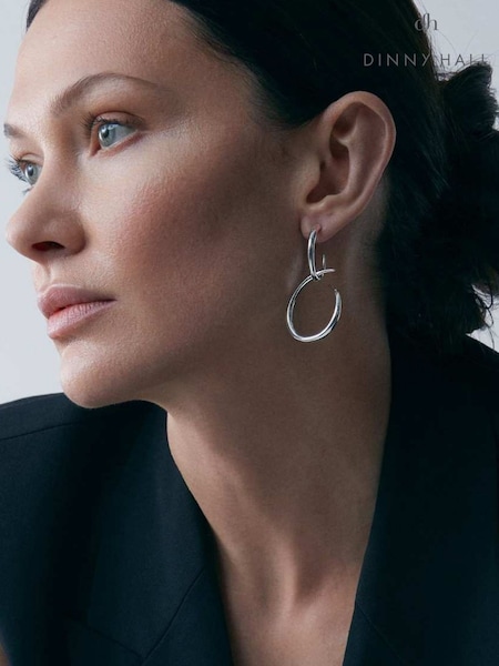 Dinny Hall Silver Folded Heart Drop Hoops Earrings