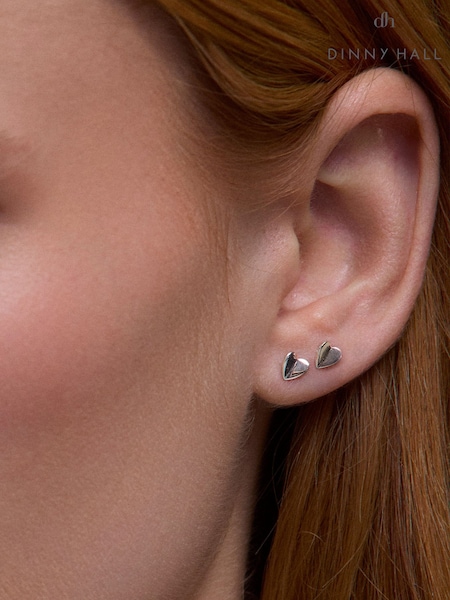 Dinny Hall Silver Plated Bijou Folded Heart Studs Earrings