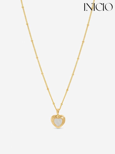 Inicio Gold Tone Mother of Pearl Heart Pendant Gift Pouch