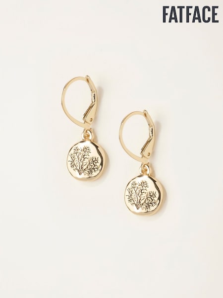 FatFace Gold Tone V and A Engraved Earrings
