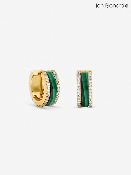 Jon Richard Gold Tone Crystal and Malachite Hoop Earrings