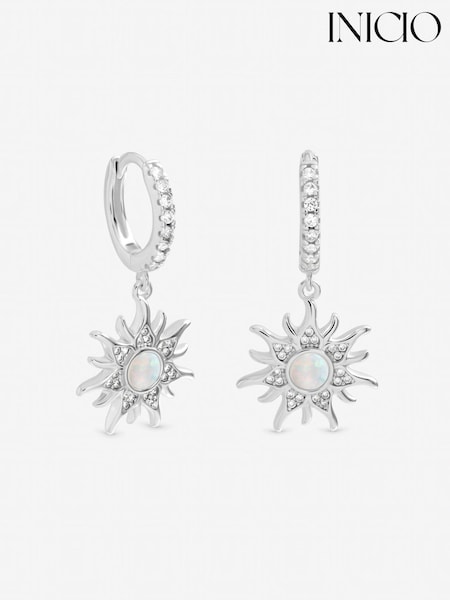 Inicio Sterling Silver Plated Opal Sunburst Charm Hoops