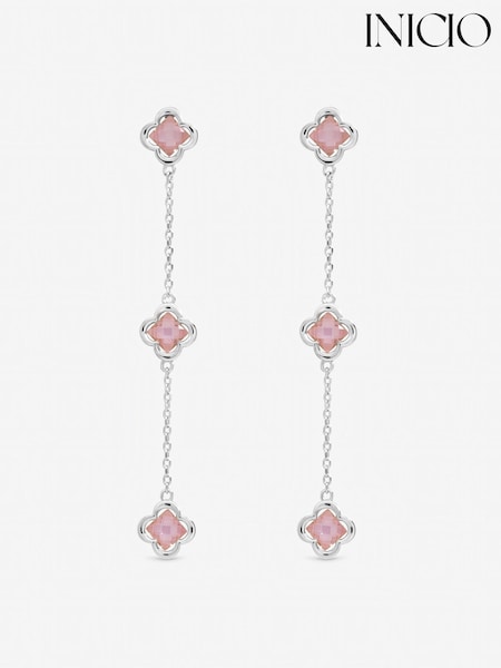 Inicio Pink Vintage Rose Fine Triple Clover Drop Earrings