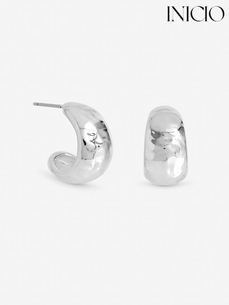 Inicio Sterling Silver Plated Molten Hoop Earrings