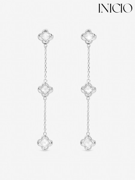 Inicio White Crystal Fine Triple Clover Drop Earrings