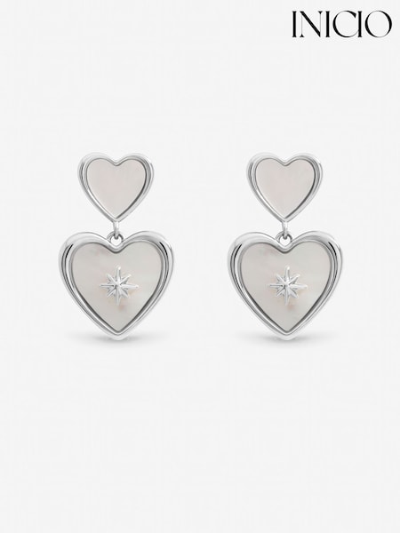 Inicio Sterling Silver Plated Mother of Pearl Celestial Heart Drop Earrings