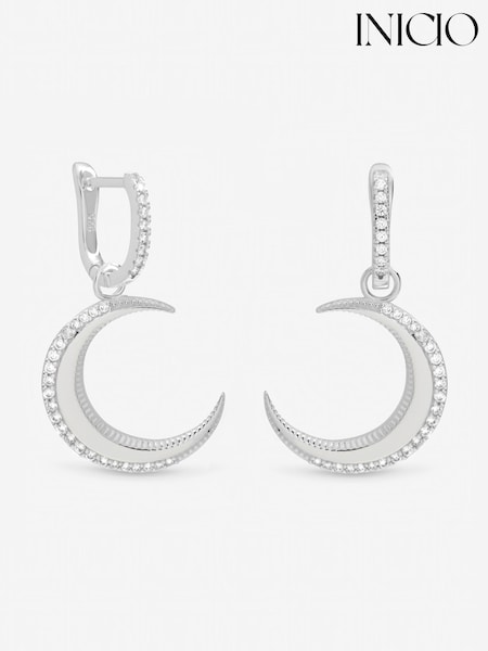 Inicio Sterling Silver Plated Pave Crescent Hoops