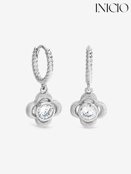 Inicio Sterling Silver Plated Satin Clover Huggie Hoops