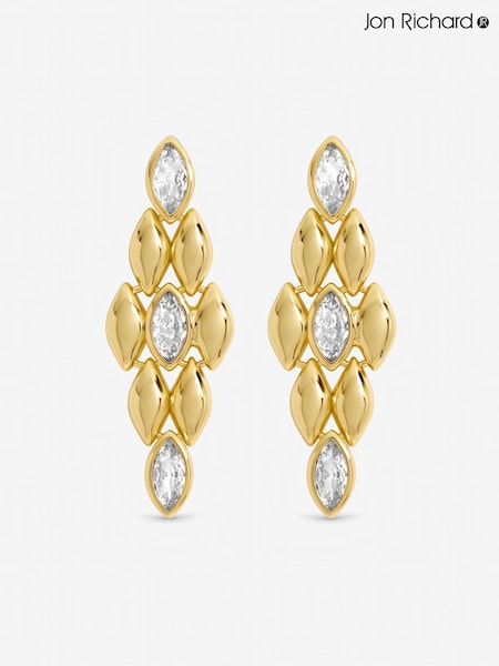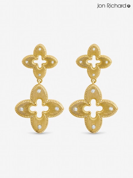 Jon Richard Gold Tone Textured Crystal Clover Earrings