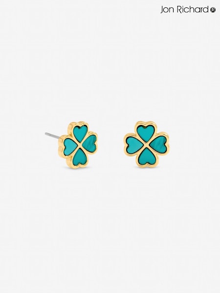 Jon Richard Turquoise Blue Clover Stud Earrings