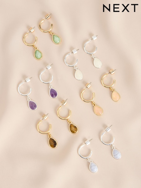 Silver Tone Semi-Precious Stone Hoop Earrings