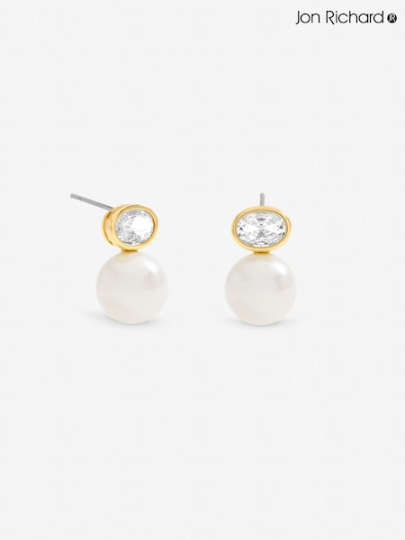 Jon Richard Gold Tone Crystal and Pearl Drop Earrings