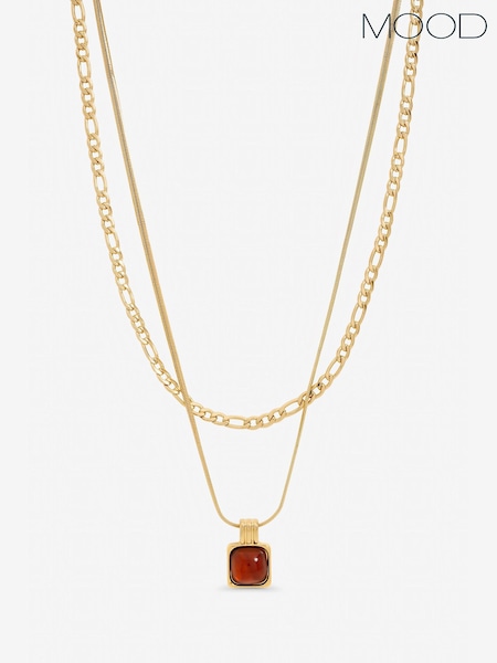 Mood Gold Tone Double Layer Chain and Resin Necklace