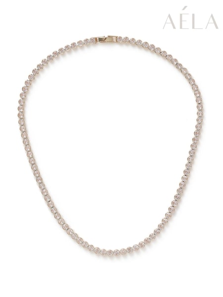 Aela Gold Tone Diamond Simulants Tennis Necklace