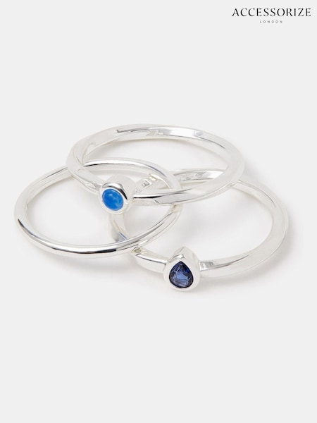 Accessorize Silver Tone Sterling Silver-Plated Mixed Stone Rings 3-Pack