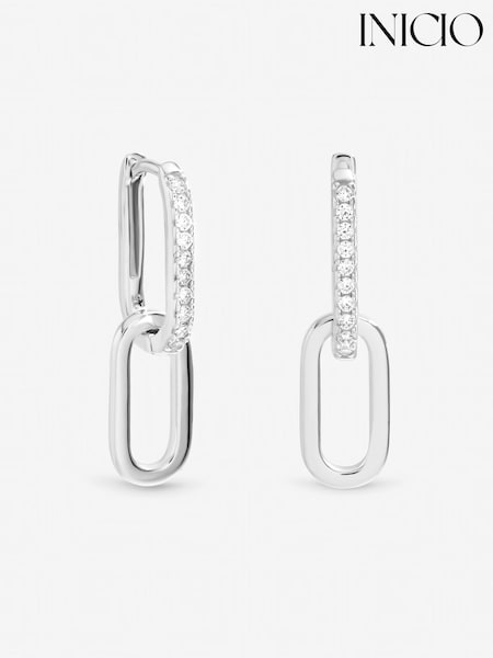 Inicio Sterling Silver Plated Polished Double Link Drop Earrings