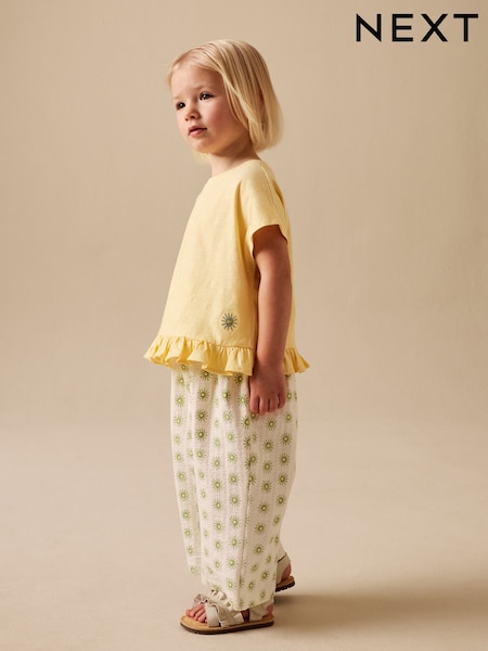 Lemon Yellow Daisy Short Sleeve Top and Barrel Trousers Set (3mths-7yrs)