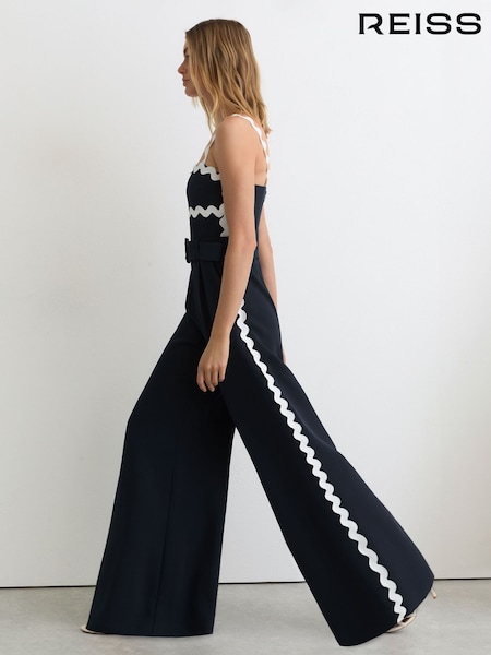 Reiss Navy/Ivory Dash Petite Ric-Rac Trim Wide-Leg Jumpsuit